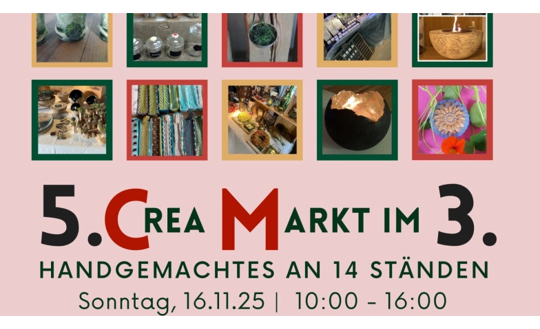 Am 5. CreaMarkt im 3. Stock von Kultur hoch 3 werden vielfältige kreative Arbeiten verschiedener Ausstellender präsentiert. Besucherinnen und Besucher können handgefertigte Geschenke entdecken oder sich selbst etwas Schönes aussuchen.