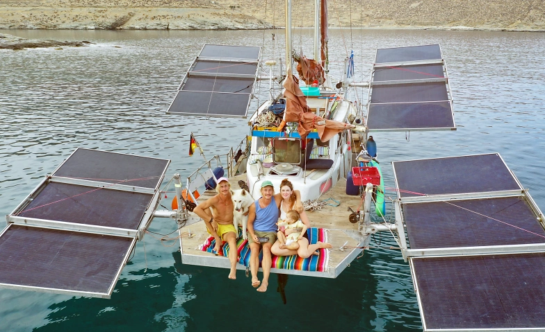 Drei Verrückte im Solarboot