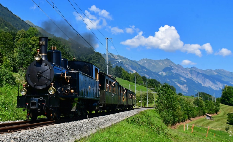 Fahren Sie mit uns am Brienzerseeufer entlang nach Meiringen! Kommen Sie etwas früher und erleben Sie die Dampfwelt anno dazumal. Es lohnt sich! Sofern noch freie Plätze vorhanden sind, ist ein Kauf von Billetten direkt im Zug möglich.