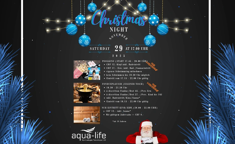 Weihnachtszauber im aqua-life (Poolkino, Fondueplausch)