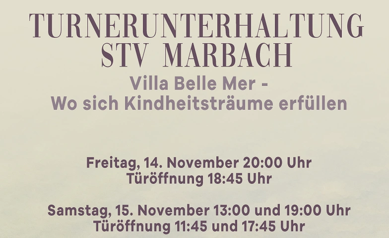 Turnerunterhaltung 2025 STV Marbach Mehrzweckhalle Amtacker, Amtackerstrasse 14, 9437 Marbach Tickets