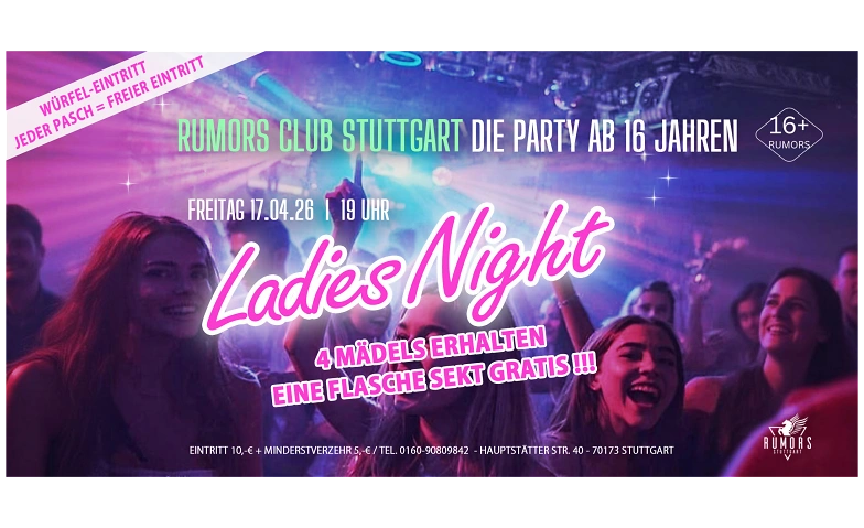 DIE PARTY ab 16 Jahren - Stuttgarts angesagteste 16er Party! Rumors Club Stuttgart, Hauptstätter Straße 40, 70173 Stuttgart Tickets