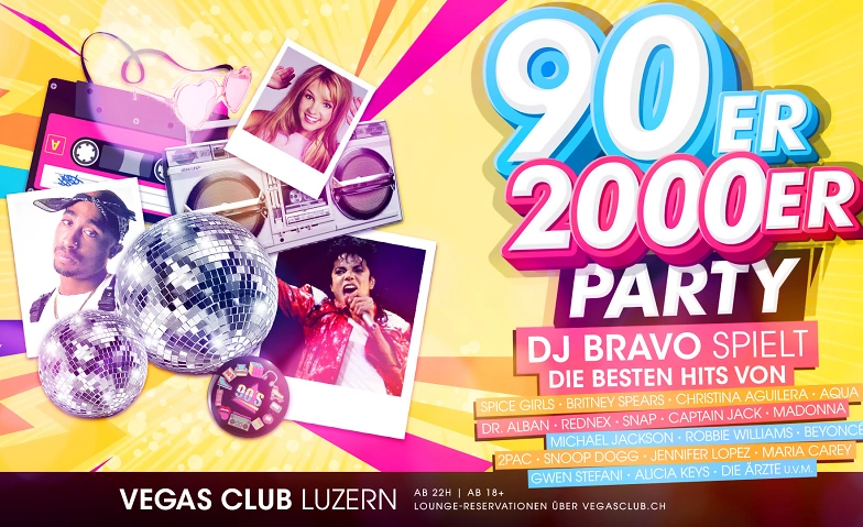 Na Bravo, freut Euch auf eine Partynacht, welche Euch in das frühere Jugendzimmer entführt. Ob Britney Spears, Christina Aguilera, die Spice Girls oder die Backstreet Boys, wir bringen sie alle für Euch - versprochen! Eine Party zum mitsingen, tanzen oder ganz einfach um sich mit Freunden zu amüsieren.