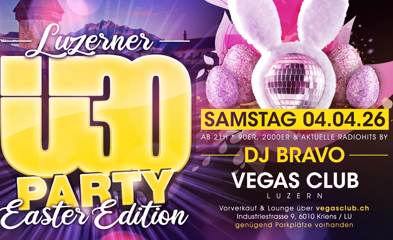 Wir freuen uns Euch alle wieder an der Luzerner Ü30 Party im VEGAS Club begrüssen zu dürfen. Für beste Musik ist gesorgt. Im Gebäude vom VEGAS befindet sich ein eigenes Parkhaus.