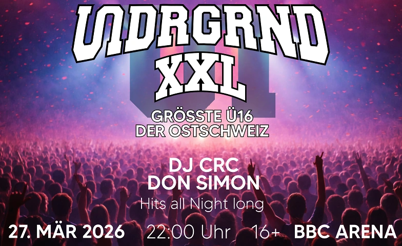 UNDRGRND XXL - GRÖSSTE ü16 PARTY OSTSCHWEIZ - BBC ARENA SH BBC Arena, Schweizersbildstrasse 10, 8207 Schaffhausen Tickets