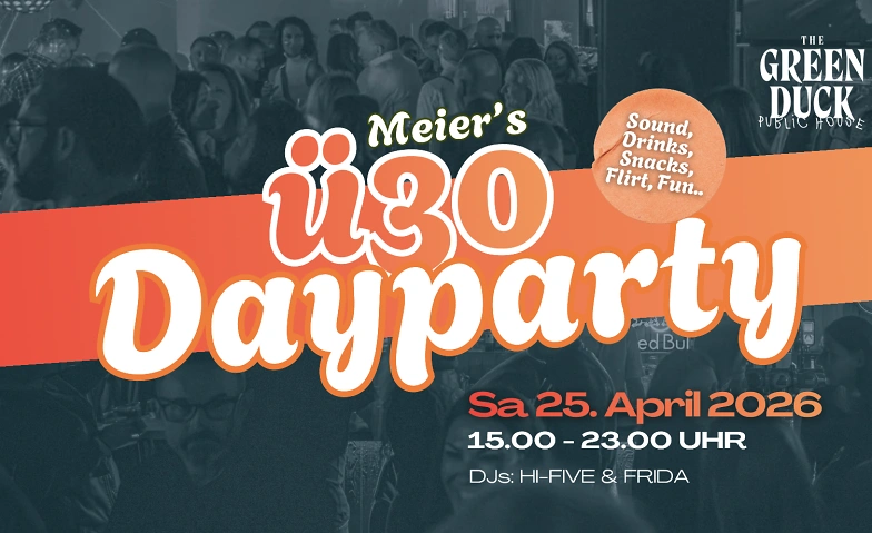Die Spring Edition von Meiers beliebter ü30 Party! Nicht Nachts, sondern als Dayparty! Cocktails schlürfen, flirten, plaudern, tanzen und dazu den passenden Partysound von DJ Hi-Five & Frida. Für den kleinen Hunger gibt's leckere Snacks direkt aus Meiers Küche. Feiern im nicen Ambiente des Green Duck Pubs! Seid ihr ready?
