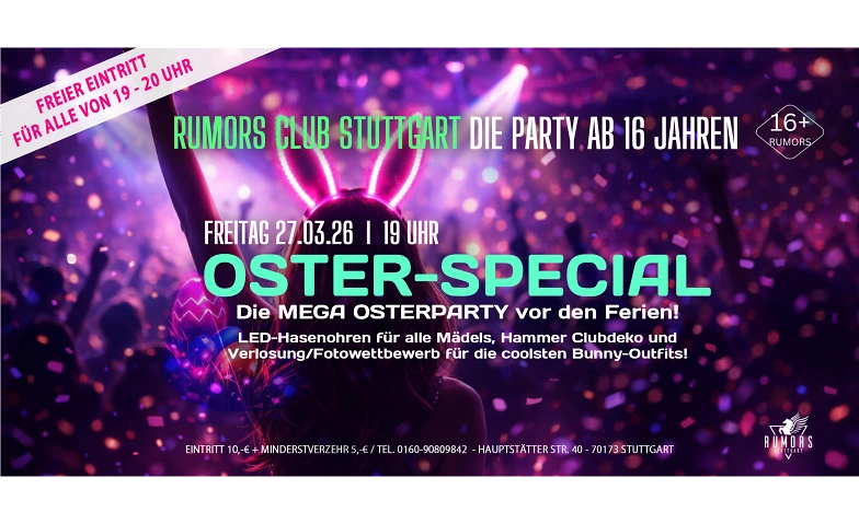 DIE PARTY ab 16 Jahren - Oster-Special Rumors Club Stuttgart, Hauptstätter Straße 40, 70173 Stuttgart Tickets