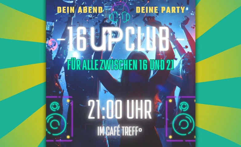 Dann kommt in den “16 UP Club”, der Party für 16-21 Jährige in Witten! Am 13. März 2026 um 21:00 Uhr erwartet euch wieder eine Nacht voller Spaß, Musik und guter Vibes im Jugendcafé Treff°! Hier könnt ihr tanzen, feiern und einfach mal den Kopf frei bekommen. Unsere DJs liefern euch die besten Beats und haben ein offenes Ohr für eure Vorschläge von aktuellen Charts, EDM, Techno bis hin zu House und Partyklassikern. Ihr wollt zwischendurch durchatmen oder einfach nur quatschen? Kein Problem! Im gemütlichen Ruheraum oder draußen im Außenbereich unter freiem Himmel könnt ihr euch entspannen. Softdrinks, Mischgetränke, Bier, Sekt und Wein stehen an der Bar für euch bereit.