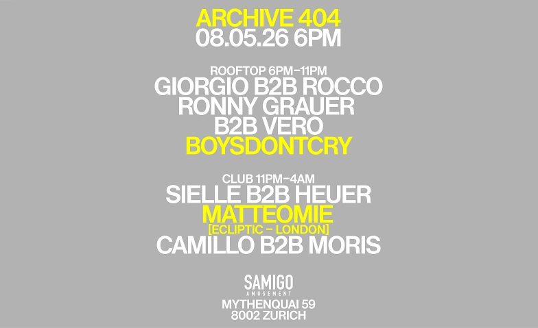 ARCHIVE 404 Samigo Amusement, Mythenquai 59, 8002 Zürich Tickets