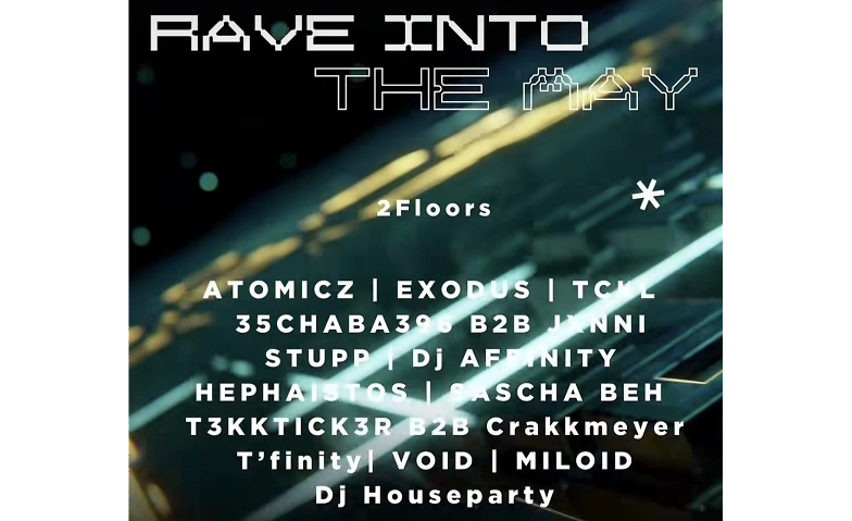 Rave into the May invites you to an unforgettable night of electronic beats spanning groove, trance, techno, hardtechno, and tekke. Starting at 21:00 and going strong until 7:30, immerse yourself in a marathon of sound crafted by an impressive lineup of DJs: