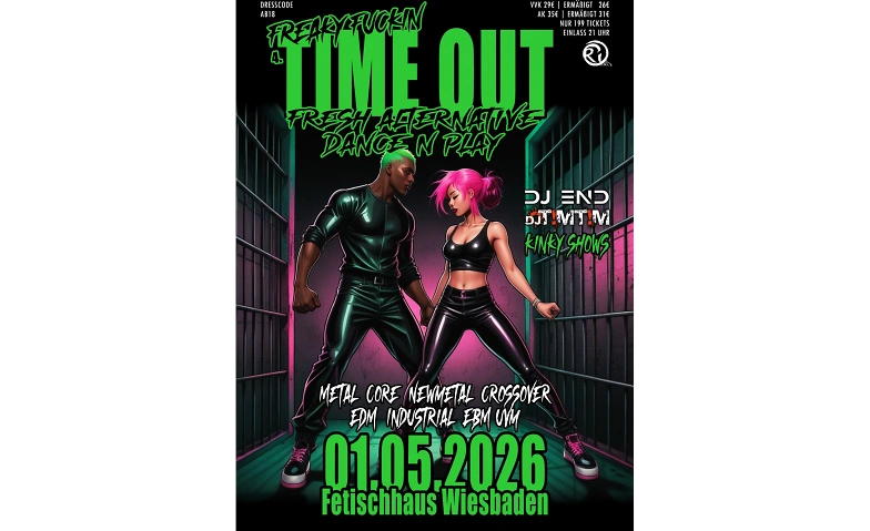 Wir holen feinste Musik nach Wiesbaden in eine exqusite Spiellocation! Freu Dich auf eine Bandbreite zwischen modernem Metal, Rock, Trancecore, EBM, und Crossover zu dem Du ausgelassen tanzen kannst. Hierfür haben wir zwei ausgezeichnete DJs, die ihr Handwerk verstehen und sich selbst in der Welt aus BDSM, Fetisch und Alternative Music bewegen. DJ End aus Zagreb ist mittlerweile nicht nur in Kroatien bekannt dafür, eine spielfreudige Crowd mit seinen elektronischen Musikperlen auf die Tanzfläche zu holen. Zusammen mit DJ Timtim, der ein umfangreiches Repertoire harter moderner Songs aus den letzten Jahren auflegt, sind sie das Dreamteam der alternative Youngster Party "Sin InSane" in Hamburg geworden. Zudem legen sie als Resident DJs für das bekannte Label "Living Dead Production" auf, die Deutschlandweit Konzerte, Dance- und Kinkpartys für alternative Musikliebhaber*innen auf die Bühne bringen.