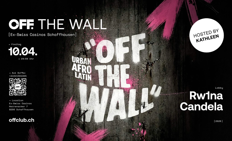 Nach dem grossen Erfolg von Kathleens erstem Event im "OFF." Pop-up Club war klar, dass der nächste Partyabend nicht lange auf sich warten lassen würde. Am Freitag, dem 10. April 2026, lädt sie erneut zum Tanz ein und verspricht eine wilde Nacht mit den besten Urban-, Afro- und Latin-Beats – ganz nach dem Motto „OFF. the Wall”. Die DJs Rw1na und She DJ Candela werden den Abend mit viel Liebe zum Detail und Rhythmus im Blut gestalten. Kommt vorbei, lasst euch treiben und geniesst ein besonderes Beisammensein im ehemaligen Swiss Casinos am Herrenacker 7 in Schaffhausen.