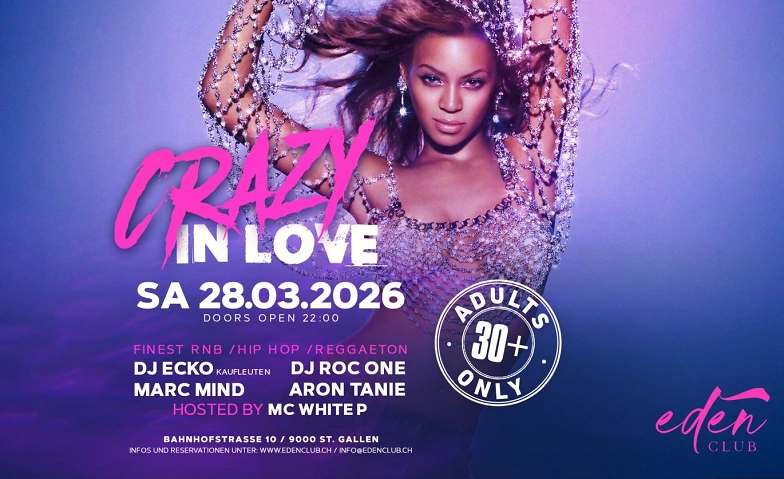 CRAZY IN LOVE Eden Club St. Gallen, Bahnhofstrasse 10, 9000 St. Gallen Tickets