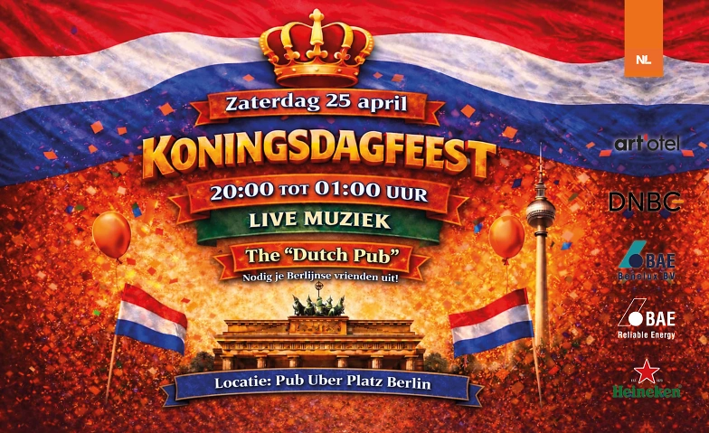 Geniet van live muziek, lekkere bitterballen en een volle pub met bekende gezichten en nieuwe vrienden. Of je nu al jaren in Berlijn woont of net bent aangekomen – dit is dé plek om Koningsdag samen te vieren.