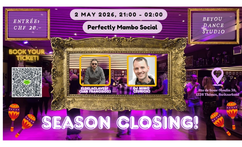 Join us for the special gala evening that will bring the 2025–2026 season to a spectacular close! Another 100% mambo night awaits you, this time at BeYou Dance Studio in Thonex, where we’ll be able to party until 2 a.m. (or later, if you’re up for it)!
