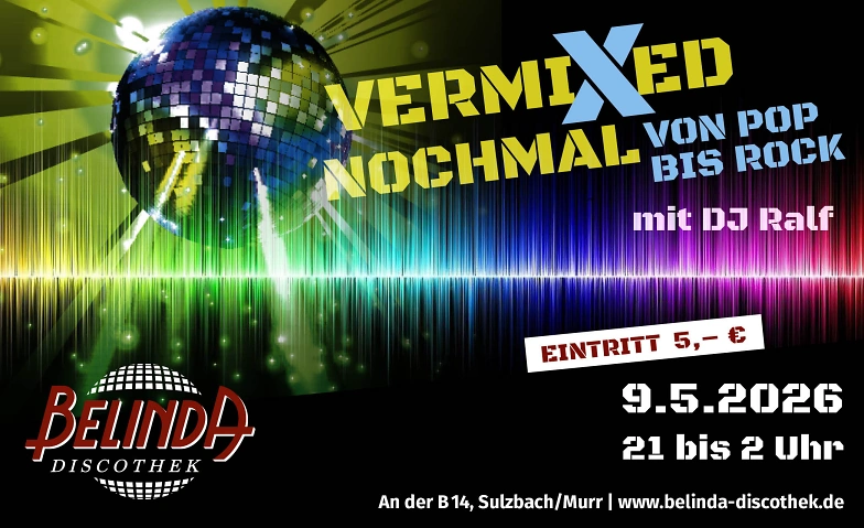VermiXed nochmal mit DJ Ralf Belinda Discothek, Backnanger Straße 78, 71560 Sulzbach an der Murr Tickets