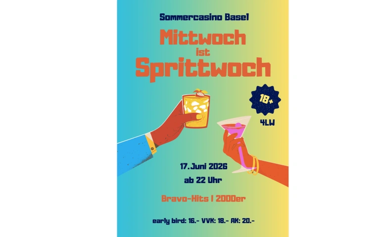 Mittwoch ist Sprittwoch! Sommercasino Basel, Münchensteinerstrasse 1, 4052 Basel Tickets