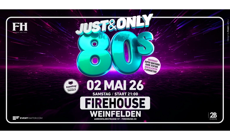 Die JUST & ONLY 80’s kommt am Samstag, 2. Mai 2026 zurück ins Firehouse Weinfelden und bringt die unvergessliche Magie der Achtziger erneut auf die Tanzfläche! 💙✨