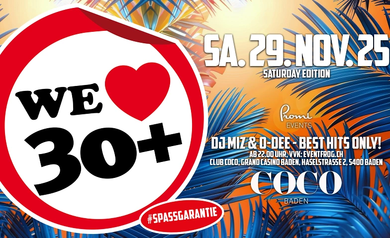 We Love 30+ - die legendäre ü30 Party als Saturday Edition im COCO Baden.