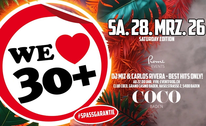 We Love 30+ - die legendäre ü30 Party als Saturday Edition im COCO Baden.