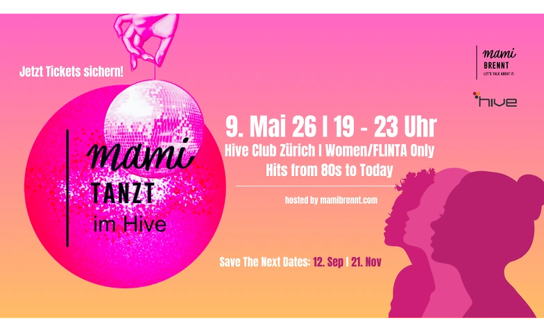 Am 9. Mai 2026 lädt mamibrennt.com wieder Women Only (ab 21 Jahren) zum frühen Tanzen ins HIVE! (Sorry, Jungs, ihr müsst leider draussen bleiben, zumindest bis 23 Uhr ;-))