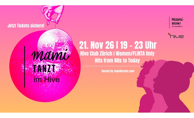 Am 21. November 2026 lädt mamibrennt.com wieder Women Only (ab 21 Jahren) zum frühen Tanzen ins HIVE! (Sorry, Jungs, ihr müsst leider draussen bleiben, zumindest bis 23 Uhr ;-))