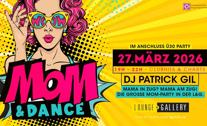 Wir freuen uns Euch zusammen mit der Frauengemeinschaft (Gruppe Junger Familien) im Kanton Zug zu einem ganz besonderen Anlass einladen zu können. Mama in Zug? Mama am Zug! Nach den tollen ersten Anlässen öffnen wir für Euch die L&G am Freitag 27.03. ab 19h erneut exklusiv für alle Mamis & Frauen. Tanze zu bester Musik ganz nach dem Gusto vom weiblichen Geschlecht. Wir setzen die wahren Heldinnen des Alltags in den Mittelpunkt und widmen den Mamis eine Partynacht voll gespickt mit Vergnügen und Tanz zu humanen Partyzeiten. Und wer es doch noch etwas wilder mag, darf gerne im Anschluss an der beliebten Ü30 Party teilnehmen.