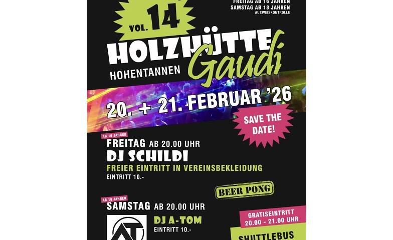 Holzhüttengaudi 20.02.2026 Hirschenschüür, Hauptstrasse 18, 9216 Hohentannen Tickets