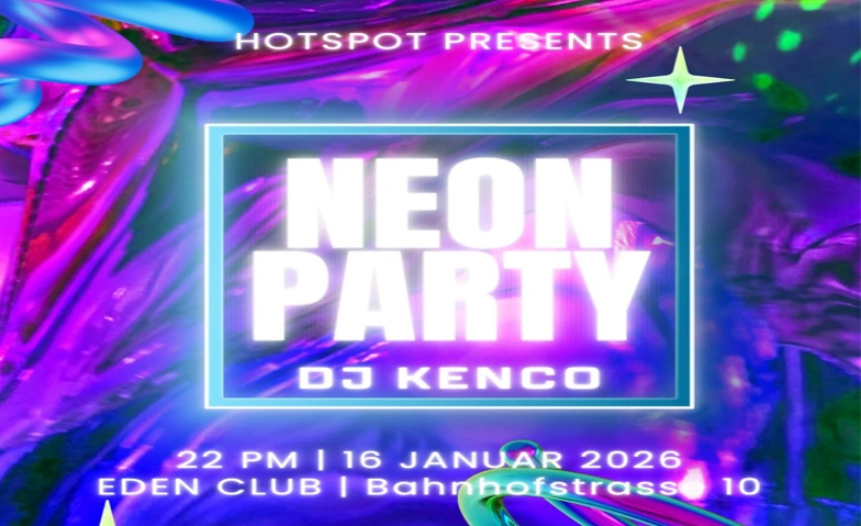 Am Freitag, 16. Januar 2026 verwandelt sich der Eden Club in ein leuchtendes Neon-Universum. Knallige Farben, pulsierende Beats und eine Nacht, die du nicht vergessen wirst. 🟢🟣⚡