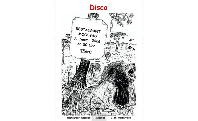 Am Samstag, 3. Januar 2026, wird im Restaurant Moosbad in Wolfertswil ab 20 Uhr gerockt. Es erwartet dich ein stimmungsvol ler Abend voller Rock- und Pop-Oldies aus den 60er-, 70er-, 80er- und 90er-Jahren. Starten wir gemeinsam schwungvoll ins neue Jahr. Schwingt das Tanzbein, singt mit und geniesst einen erfrischenden Drink an der Bar. Bist auch du dabei? Die Thüris und das Bädliteam freuen sich, wenn viele Oldies-Fans den Weg ins Moosbad unter die Füsse nehmen. Es wird bestimmt wieder ein unvergesslicher Abend.