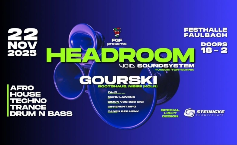 FGF presents: HEADROOM - ein elektronisches Event der Extraklasse mit sattem VOID-Soundsystem und einem Line-up, das garantiert für eine eskalierende Tanzfläche sorgt!