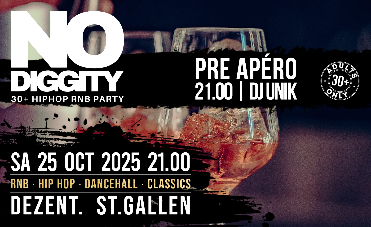 Die Ü30 Hip Hop & RnB Party NO DIGGITY kehrt zurück am 25. Oktober 2025 im Dezent. Club St.Gallen!