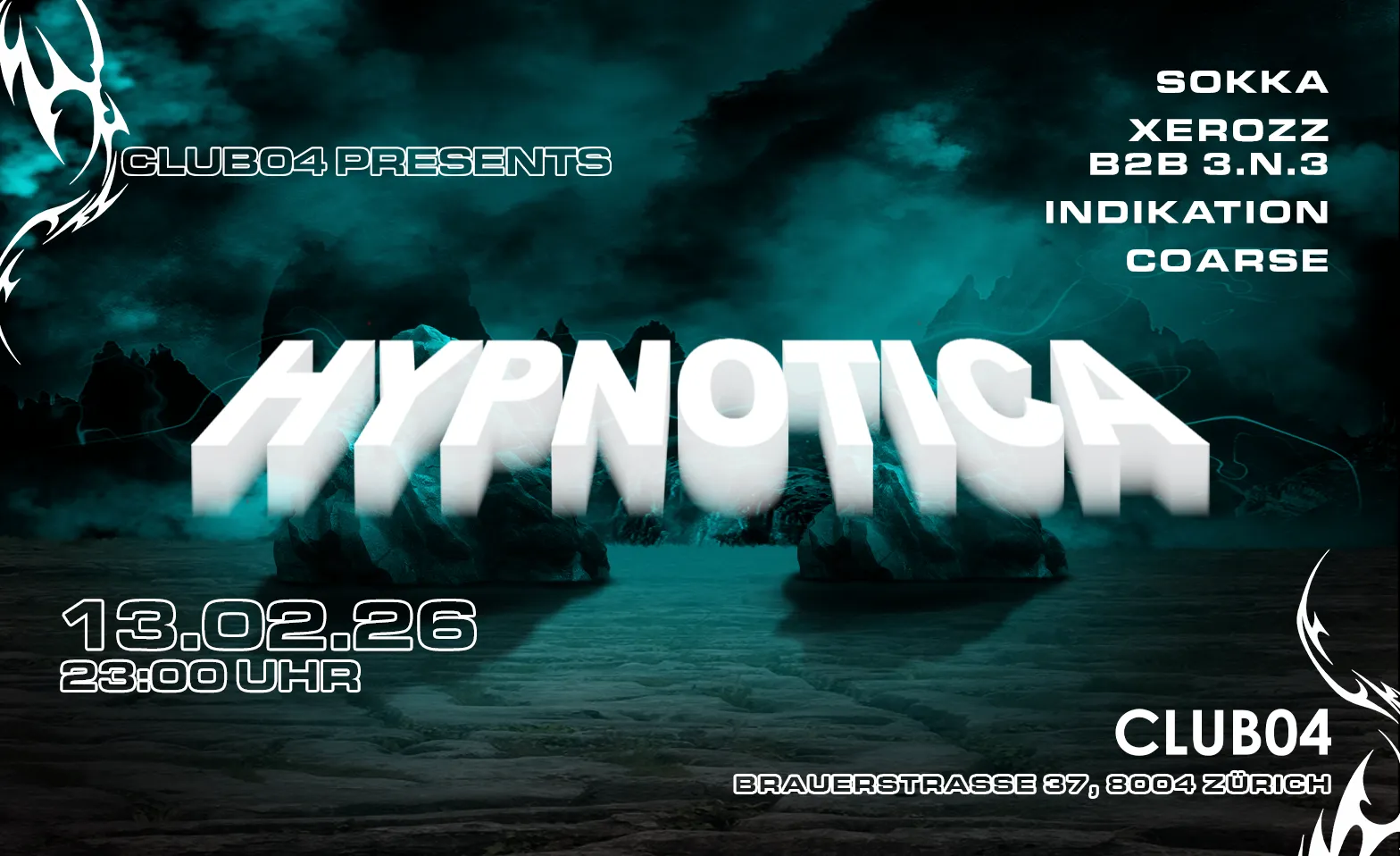 Mit SOKKAXEROZZINDIKATIONCOARSE sowie 3.N.3 vereint sich ein Line-up, das kompromisslos auf treibenden Sound und dichte Atmosphäre setzt. Jeder Act baut Spannung auf, jede Sequenz verstärkt den Sog – bis Raum, Körper und Musik untrennbar verschmelzen.