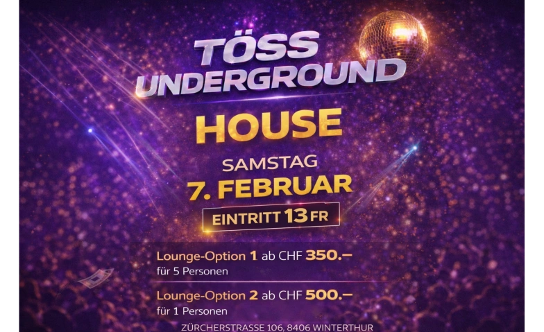 Töss Underground - HOUSE PARTY - 7 FEB Winterthur Töss, Zürcherstrasse 106, 8406 Winterthur Tickets