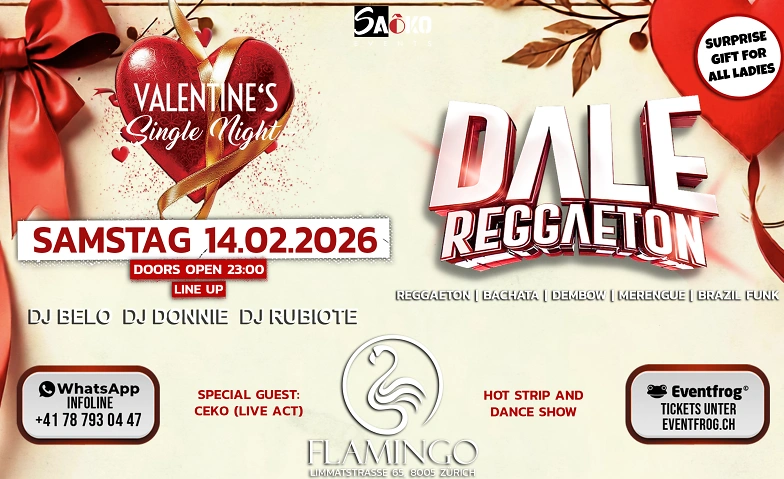 DALE REGGAETON - VALENTINE‘S SINGLE NIGHT Flamingo Club, Limmatstrasse 65, 8005 Zürich Tickets