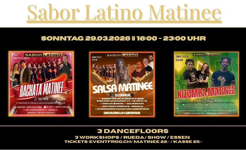 📍 Sabor Latino Club, Werkstrasse 16, Winterthur 👉 www.eventfrog.ch/Matinee ✨ Erlebe den beliebtesten Tanz-Sonntag der Region. Sabor Latino Matinee – wo sich die Tanzfamilie trifft.