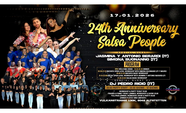 Am 17.01.2026 findet wieder die Meeega Geburtstagsparty von Salsa People im eleganten THE COLORS statt.