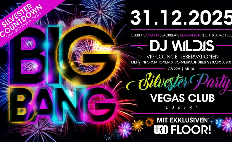 Es ist zweifelsohne die Nacht der Nächte! Macht Euch auf die grösste Silvesterparty der Zentralschweiz gefasst mit einem Silvester-Countdown und einer Stimmung der Superlative! Musikalisch begleiten wir Euch mit den besten Clubhits, Charts, Blackbeats, Reggaeton & Tech- und Afro-House. Der Eintritt für die BIG BANG Party ist ab 18 Jahren.