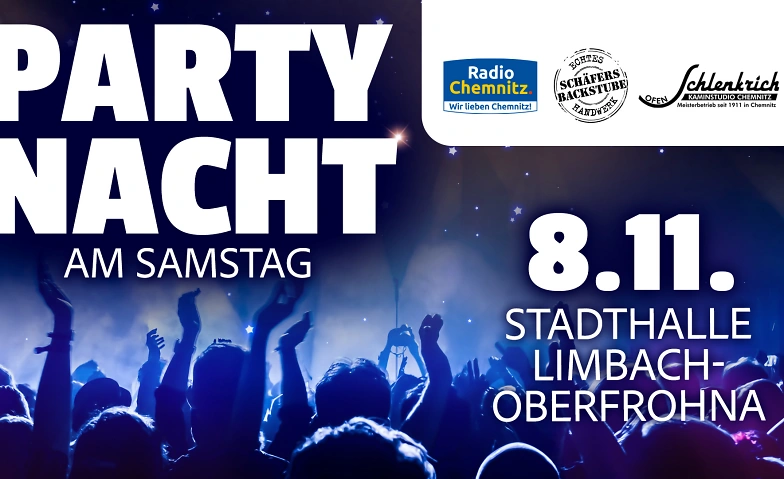Ab 20 Uhr starten wir die Party Nacht am Samstag in Limbach-Oberfrohna powered by Radio Chemnitz, Schäfers Backstube und Ofenbau Schlenkrich.