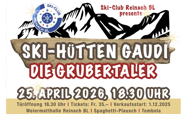 am 25. April 2026 verwandelt sich die Weiermatthalle in Reinach BL in eine pulsierende Ski-Hütte, denn es ist wieder Zeit für die legendäre Ski-Hütten Gaudi!