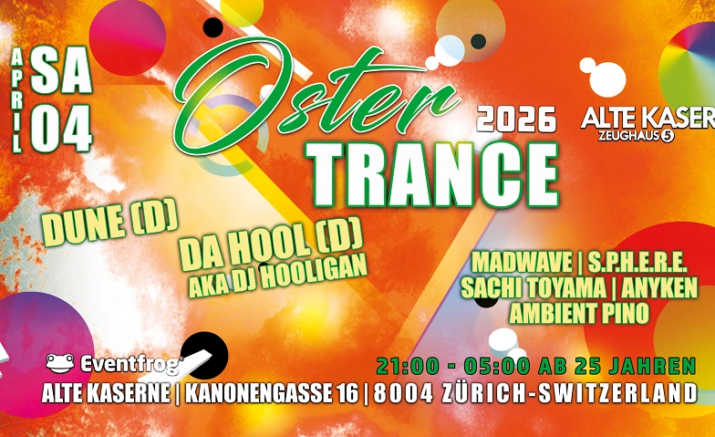 Oster Trance mit DUNE & Da HOOL Alte Kaserne, Kanonengasse 16, 8004 Zürich Tickets