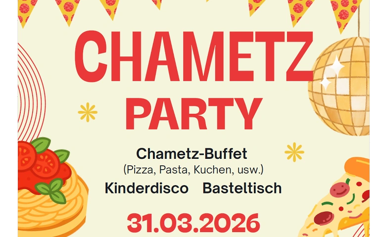 Bevor Pessach beginnt, laden wir zu einer gemeinsamen Chametz Party ein. Freuen Sie sich auf ein Chametz-Buffet mit Pizza, Pasta, Kuchen und weiteren Leckereien.