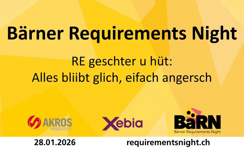 Sei mit dabei, wenn wir im Rahmen der 30sten Abendveranstaltung zum Thema Requirements Engineering in Bern auf einige der besten Momente zurückschauen und in den heutigen Kontext stellen. Was hat sich unterdessen getan? Stimmt die damals erfolgte Aussage im heutigen Kontext noch? Oder revolutioniert die KI das RE? In drei Workshops kannst du dich in aktuelle Themen vertiefen und nach tiefgründigen Präsentationen am Apéro Riche bis tief in die Nacht mit interessanten Menschen austauschen
