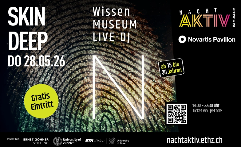 Am Donnerstag, 28. Mai 2026, findet in der Novartis Pavillon die nächste unkonventionelle Museumsnacht statt. „Skin Deep“ heisst unser Motto. Eingeladen wird zum Ausprobieren, Staunen und Geniessen.