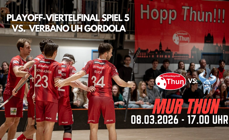 Jetzt zählt jede Aktion, jeder Zweikampf und jede Unterstützung von den Rängen. Die Playoffs stehen für pure Emotionen, maximale Intensität und Unihockey auf höchstem Niveau. In der heimischen MUR Thun will der UHC Thun den Einzug ins Playoff-Halbfinale im alles entscheidenden Spiel 5 klarmachen!