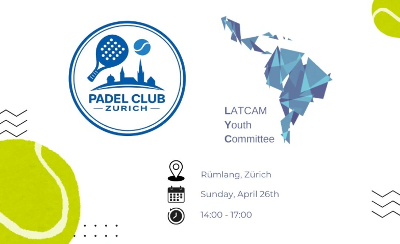 Join us for a special Padel Club Zurich (PCZ) 🔵⚪️ x Latin American Chamber of Commerce Youth Committee (LYC) 🌎 Padel Tournament on Sunday, 26th of April from 14:00–17:00 in Rümlang (exact location TBA) 📍Whether you’re completely new to padel or already have experience, this event is designed to bring people together for an afternoon of sport, fun, and connection 🥳