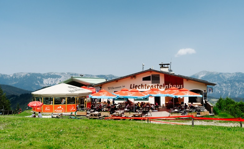 • Treffpunkt für die Ermittlungen ist die Talstation der Semmering-Hirschkogel Bergbahn. Mit nur wenigen Schritten erreichen wir dann von der Gondel das Liechteinsteinhaus.