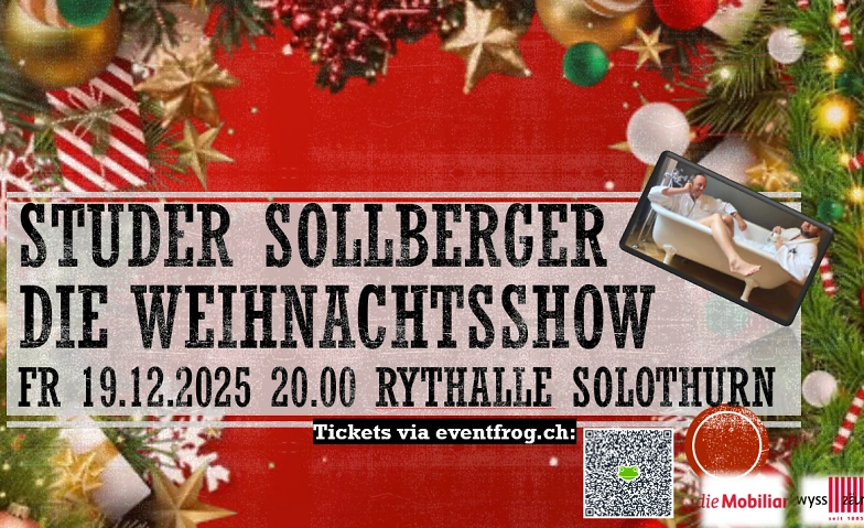Warst du noch nie an einer Studer Sollberger Late night show? Kein Problem! Jetzt kannst du dir endlich einen Platz ergattern und kannst kurz vor Weihnachten noch einmal richtig lachen. Nimm deine Freunde und Familie mit: in der Weihnachtsshow wird für alle etwas dabei sein: Spiel, Spass, Talks mit spannenden Gästen, Videoeinspielungen und ein Jahresrückblick der besten Schlagzeilen aus dem Jahr 2025.