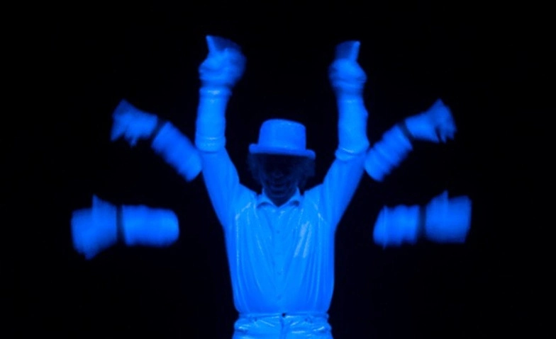 Im Dunkeln erwachen leuchtende Figuren im Neonlicht zum Leben. Poetisch, überraschend und humorvoll, mit Artistik und Akrobatik.
