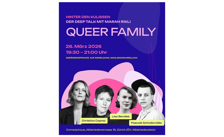 In diesem Deep Talk spricht die Autorin und Aktivistin Marah Rikli mit Christina Caprez, Lisa Bendiek und Pascale Schreibmüller über queere Familienschaft: über Elternschaft jenseits heteronormativer Vorstellungen, über Geburt als politisch-intimen Raum, über Sorgearbeit, Verantwortung und Wahlverwandtschaften.